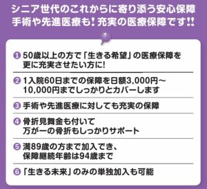そのデメリットを解消するために生まれたのが、50歳~89歳までの方が入れる「生きる未来」。
