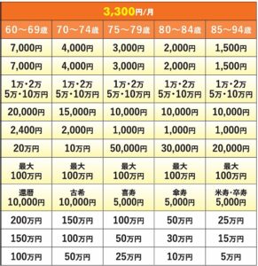 『65歳~70歳』『70歳~80歳』『80歳~85歳』それぞれ3つの期間に分かれています。
